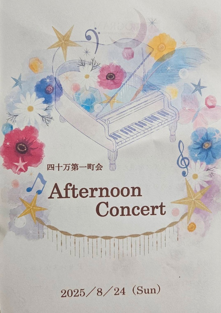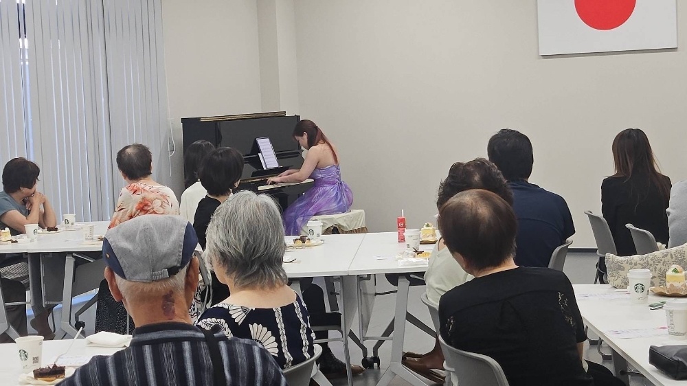【アフタヌーンコンサート】8月24日 四十万公民館にて 【未夢先生】地域のアフタヌーンコンサートにて演奏しました。1時間にわたるトーク&演奏を、みなさんはケーキを食べながら、笑いも交えて楽しんでいただきました。最後は、全員の手拍子の中、トルコ行進曲~ジャズversion~/ファジル・サイで、会場が盛り上がりました。アンコールの手拍子も止まらない大変盛り上がったコンサートになりました🎵皆さま、ありがとうございました!